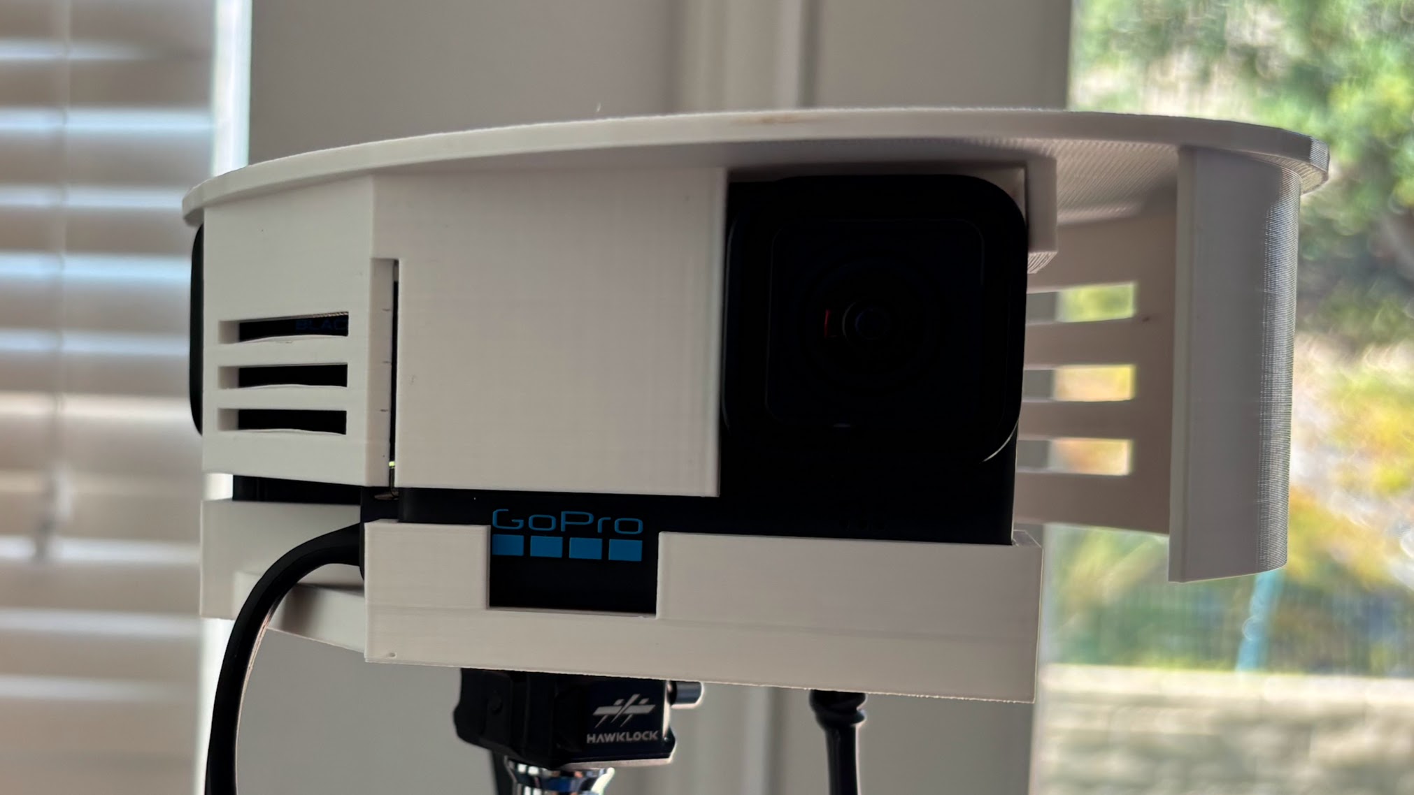 It’s my very first 3D printed design so a little rough around the edges. I remixed the original mount to include vent holes underneath as I noticed the GoPros (in my case, the Hero 10) would get really hot underneath, and the original mount would not allow this heat to dissipate. This is printed in PETG as I tried PLA but it warped in the heat.