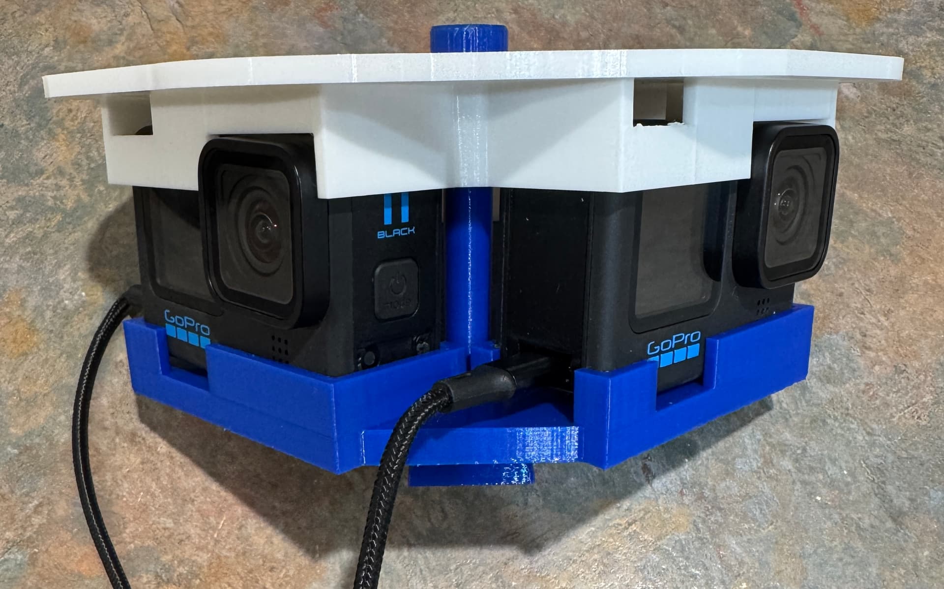 I have changed the angle to 25 degree to get more of the nearest sideline. The tripod mount stays attached and the camera unit just slides on held by friction and gravity. Example shot was a windy day with no issues about stability. Battery holder stays on and is ready for quick change if required. All control of the cameras is done through the app which can turn them on, sync the date and start recording once it has power. The stitch was near perfect. Even when there was a wobble from the wind, it was still a quality video with only minimal evidence.
